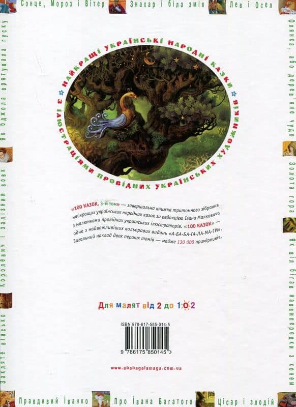 «100 КАЗОК. 3-й том» — завершальна книжка тритомного зібрання найкращих українських народних казок за редакцією Івана Малковича з малюнками провідних українських ілюстраторів. «100 КАЗОК» — одне з найважливіших кольорових видань «А-БА-БА-ГА-ЛА-МА-ГИ».