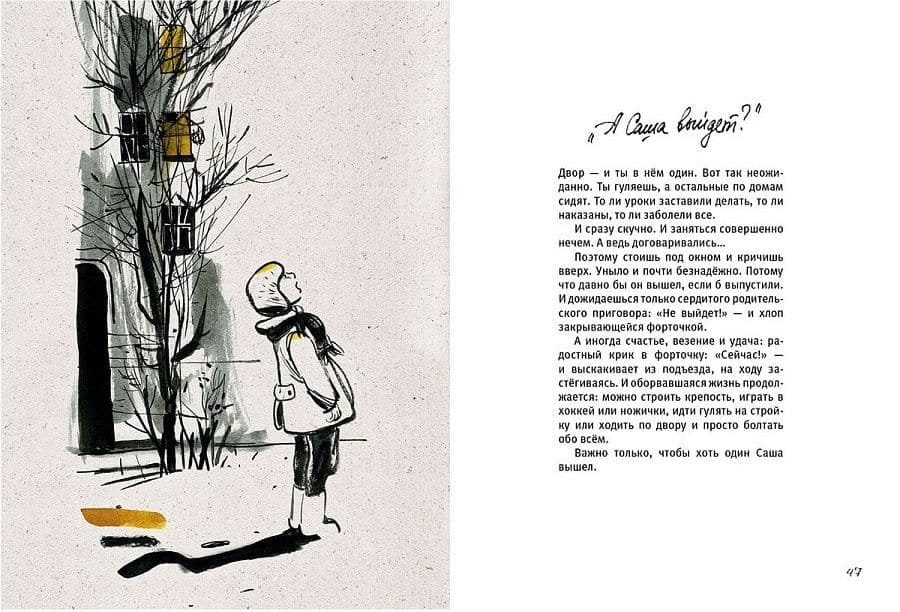 «Да! У меня тоже такое было!» – воскликнете вы, когда откроете эту книгу. Кусачий свитер, диафильмы, стенгазета, сачок, сбор макулатуры, переводные картинки, фанерный ящик посылки и сургучная печать. Герои этой книги выбивают ковер во дворе, варят сгущенку, гладят пионерский галстук, не наступают на трещины в асфальте, измеряют глубину луж весной. И посылают друг другу позывные под окнами: «А Саша выйдет?»