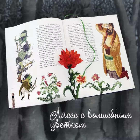 «Аленький цветочек» — старинный сюжет о заколдованном принце теперь в интерактивном издании! Литературная сказка Сергея Аксакова, записанная «со слов Пелагеи ключницы», предстаёт во всей красе на страницах книги-представления, и подлинная драгоценность — язык, которым она рассказана. Читателя ждёт неблизкий путь в тридевятое царство, тридесятое государство, где за морем, за чащей непроездной развернутся перед ним живые картины — многослойные объемные панорамы. Каждая из них — как изысканная и сложная сцена в бумажном театре. Будут в этой книге и волшебный чертог с невиданными садами, и красавица дочь купеческая, и чудище — зверь лесной, и громовые стрелы, и счастливое спасение от чар. И конечно вырастет на муравчатом пригорке чудо чудное, диво дивное — аленький цветочек.