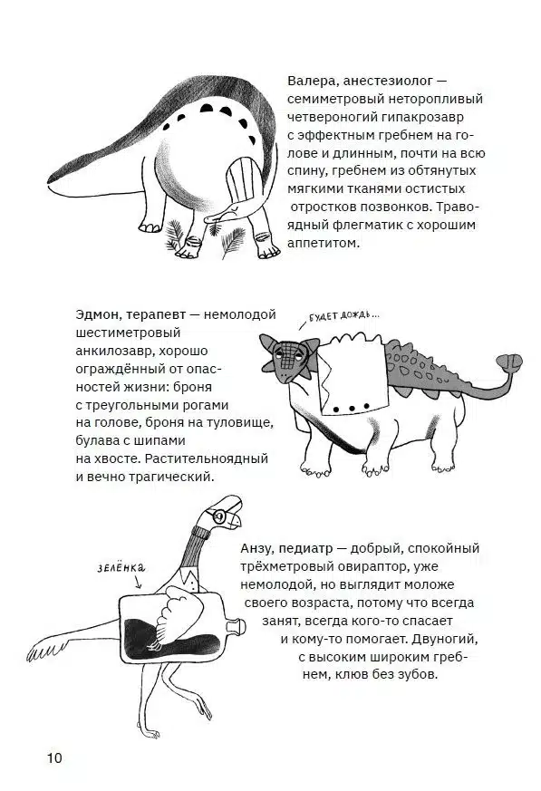 Проза жизни обычной больницы: операции, вызовы, отчёты, собрания, недовольные пациенты… Только все сотрудники — динозавры мелового периода. Все давали клятву Гиппократозавра, и у каждого свои заморочки: терапевт-анкилозавр — нытик, хирург-птеродактиль — болтун, а медсестра-дромеозавр кусается. Вот и работай с такими! — страдает главный врач. А если вы удивляетесь, откуда в мезозойской эре зелёнка и слабительное, дочитайте до конца, вас ждёт головокружительное путешествие во времени.