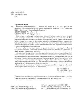 В милых и добрых историях, каждая из которых соответствует месяцу года, Мария Бершадская рассказывает о том, как живётся, когда ты вроде и маленький, а вроде уже и большой. И не имеет значения, какого ты при этом роста.