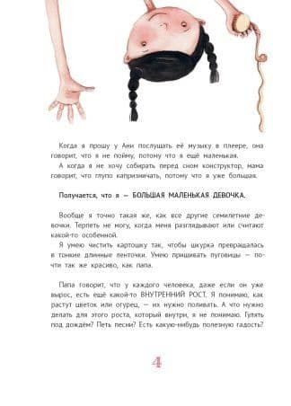 Жене семь лет. Она большая или маленькая? Кто знает! А вот рост у девочки точно большой: целых два метра, выше самого высокого баскетболиста. Но это не так уж и важно. Ведь Женя удивительная вовсе не поэтому, а потому что точно знает, как сделать каждый день необыкновенным. Узнать что-то новое об окружающих (например, как Будущий Мишкин Дедушка спас Будущую Бабушку от индюка), смастерить волшебный мешочек радости, научиться заплетать волосы в “лучи любви”, а ещё — найти себе занятие на каникулах, заработать первые деньги и перестать быть самой младшей в семье.