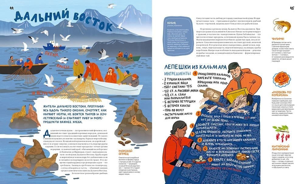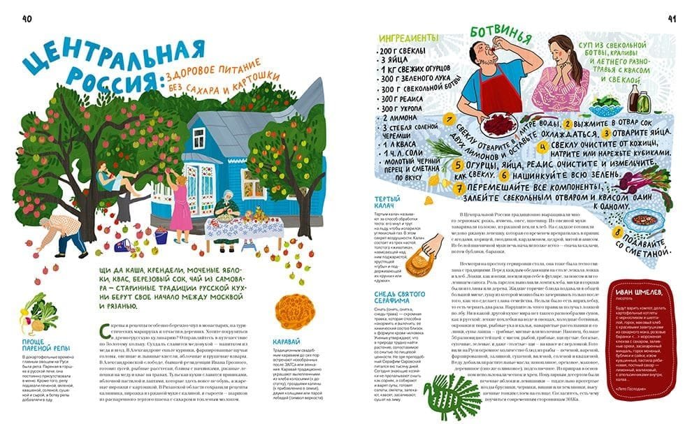 Художница Стефания Янковская с юмором и теплотой превратила рецепты в яркие рисунки, подчеркивающие уникальность каждой кухни мира.