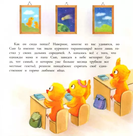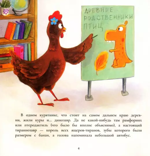 Однажды в обычном курятнике появилось очень необычное яйцо, из которого вылупился… динозаврик! Что же делать с этим неизвестным существом? Хорошо, что по соседству живёт умный индюк Леонардо. Он рассказал курам много интересного о динозаврах. Давай и мы с тобой послушаем эту историю.