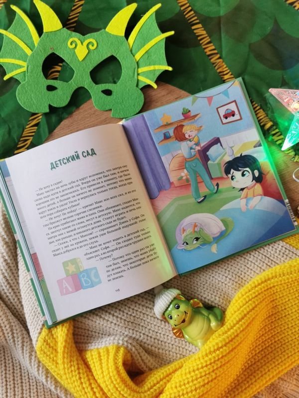 Максу скоро два года. У него есть старшие брат и сестра, Дэн и Софи, а еще недавно появился мудрый дракончик Дзинь, который знает, что делать, когда не хочется спать, почему пора проститься с соской, и как съесть с аппетитом даже то, что не нравится. Читая ребёнку вслух истории о Максе, Софи и Дэне, вы сможете вместе прожить сложные эмоциональные моменты, будете сопереживать героям, узнавать в них себя, примерять ситуации. В конце каждой истории есть раздел “Для родителей” с нескучной методологией и простыми упражнениями для комфортного проживания эмоциональных моментов.