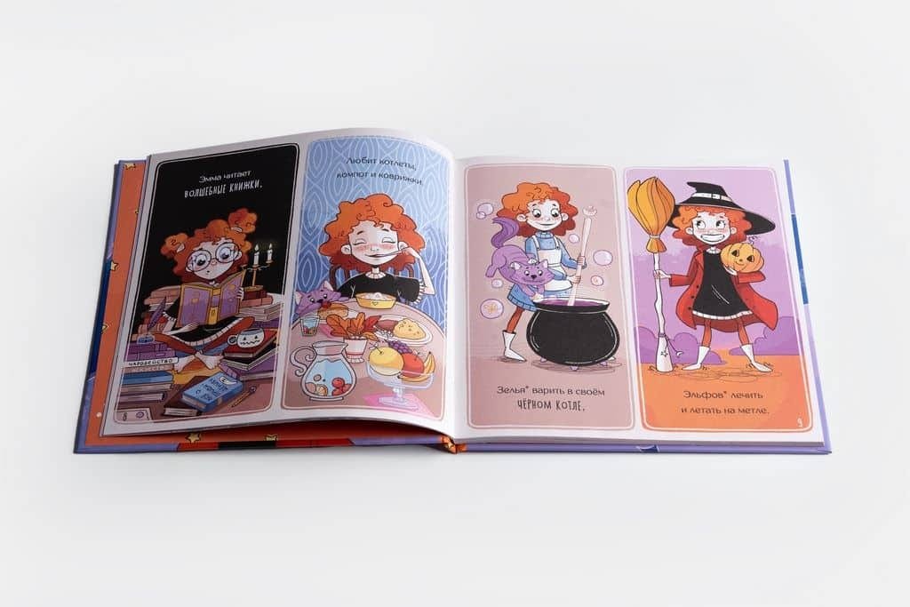 Эмма – подрастающая ведьма. Она обожает колдовать, читать и летать на метле.