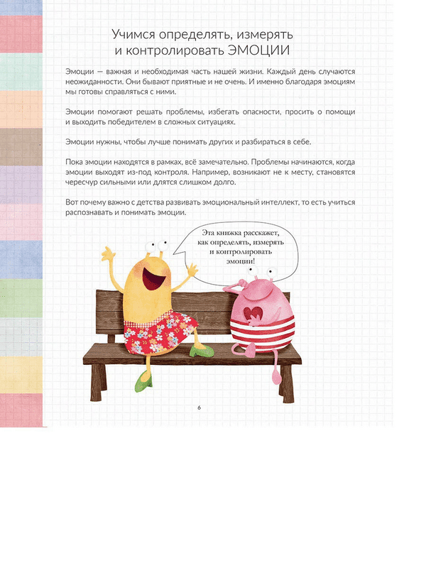 Эта книга — отличный справочник по эмоциональному интеллекту и психогигиене для детей, подростков и взрослых. Авторы учат распознавать десять основных эмоций, называют их причины и дают практические советы о том, как правильно работать с эмоциональным состоянием. Эмоциометр инспектора Крока на форзаце поможет в любой момент осознать, что вы на самом деле чувствуете, а подробные инструкции внутри книги расскажут, как справиться с неприятными чувствами.