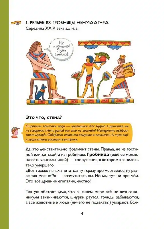 Если вы еще не были в залах Древнего Египта в Эрмитаже (да даже если и были!), мы предлагаем вас отправится туда вместе с этой невероятно смешной и познавательной книгой. Выполняйте задания, отвечайте на вопросы, и тогда вы узнаете, почему нельзя залезать в незнакомые сундуки, выясните, как глаз оказался на виске, познакомитесь с настоящим фараоном, мумией и той самой Клеопатрой и научитесь писать свое имя египетскими иероглифами. Одним словом, вас ждут настоящие музейные приключения!