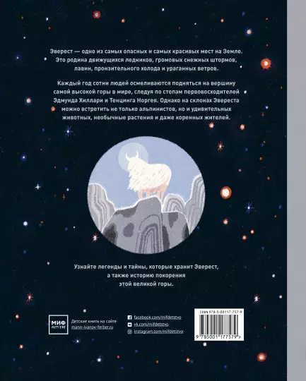 Если вы не знаете ответов на эти вопросы – эта книга для вас. Ведь Эверест – одно из самых опасных и красивых мест на Земле. Это родина движущихся ледников, громовых снежных штормов, лавин, пронзительного холода и ураганных ветров. Тибетцы называют его Джомолунгмой, что означает “Божественная Мать жизненной энергии”. А в Непале гора известна как Сагарматха, “Богиня небес”.