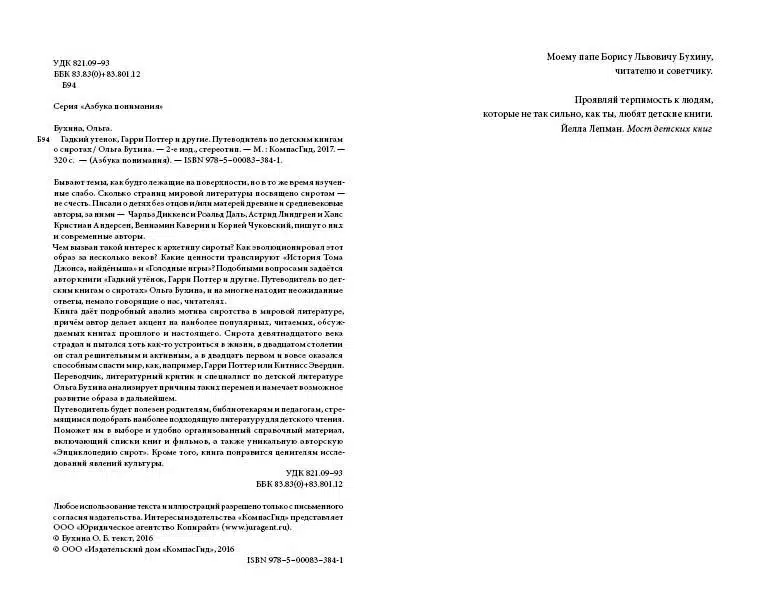 Сколько страниц мировой литературы посвящено сиротам – не счесть. Эта книга даёт подробный анализ мотива сиротства в мировой литературе, причём автор делает акцент на наиболее популярных, читаемых, обсуждаемых книгах прошлого и настоящего. Такой путеводитель будет полезен родителям, библиотекарям и педагогам, стремящимся подобрать наиболее подходящую литературу для детского чтения. Поможет им в выборе и удобно организованный справочный материал, включающий списки книг и фильмов, а также уникальную авторскую “Энциклопедию сирот”. Кроме того, книга понравится ценителям исследований явлений культуры.