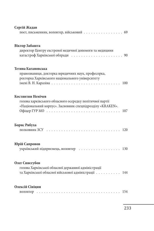 Які виклики постали з перших днів війни перед харків’янами, адміністрацією області та міста, правоохоронними органами, рятувальниками, пожежниками, волонтерами згадують безпосередні учасники подій — герої книжки.