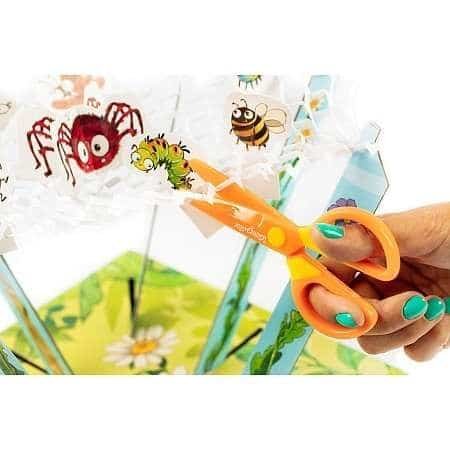 Достаньте из коробки паутинки и цветы-опоры, натяните паутинку и разместите на ней паучка и 10 букашек. По очереди делайте разрезы ножницами, чтобы освободить всех жучков. Осторожно, сам паучок должен оставаться на паутинке! Как только все букашки свободны – вы все вместе выигрываете!