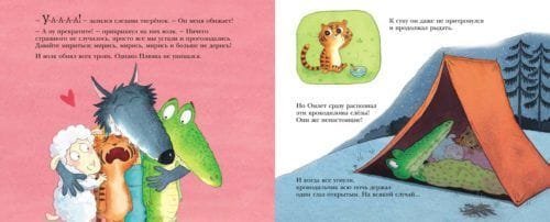 В домике с морковной крышей дружно и весело жили овечка по имени Рагу, волк по имени Вок и крокодильчик по имени Омлет. Однажды Омлет побежал за палочкой, а принес тигренка — мягкого и пушистого, настоящего Плюшу! Овечка захотела оставить Плюшу себе, но волк сказал, что нужно отвести тигренка домой. Когда они шли вверх по реке, Плюша ни на шаг не отставал от Рагу: он так и льнул к овечке и ласково урчал ей в ухо. «Какой прелестный малыш!» — говорила овечка и все, кто встречался им на пути. И только Омлет замечал то, что другие не видели: тигренок любит мышек и рыбок не просто так, а кушать! И к овечке у него тоже не совсем обычный интерес! Подозрения Омлета подтвердились, когда тигренок привел их домой, к папе и маме тиграм. И все могло бы кончиться очень печально, если бы не Омлет, которого трудно было назвать прелестным, но который оказался верным и преданным другом!