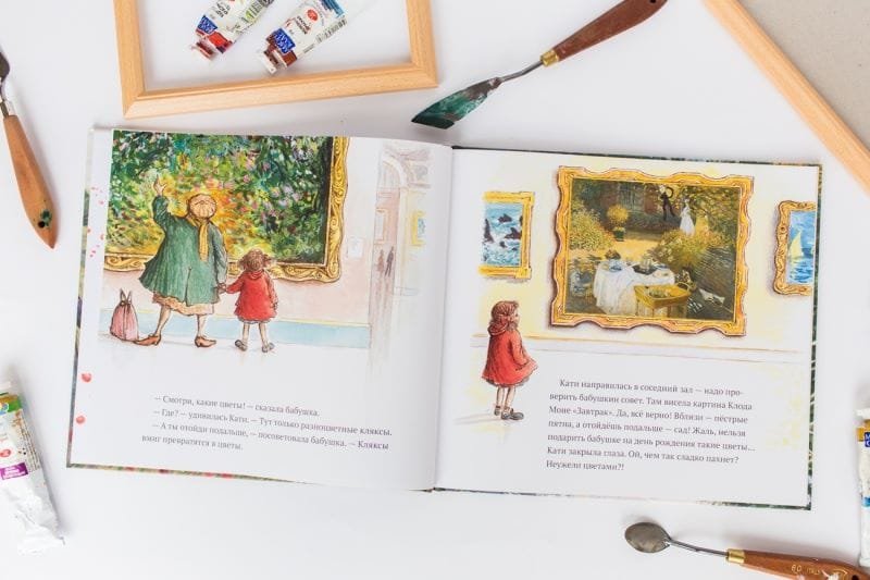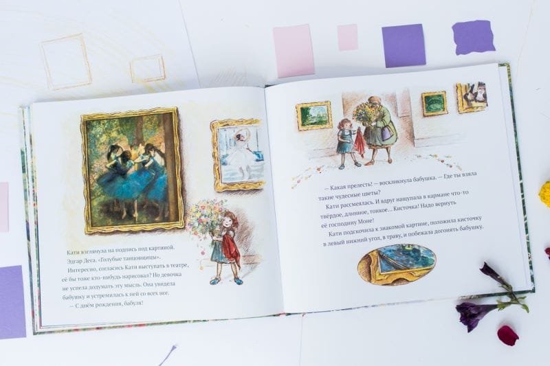 У бабушки – день рождения. Хорошо бы подарить ей красивый букет, только где его взять? Стоя посередине галереи, Кати разглядывает цветы на картинах импрессионистов. А что, если…