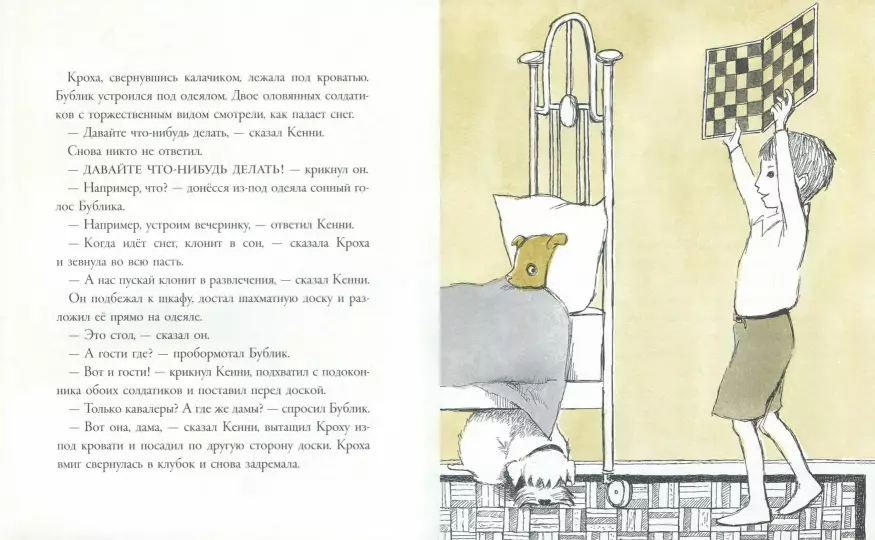 “А на крыше конь, – подумал Кенни, проснувшись среди ночи, – но маме с папой я о нём не расскажу. А то они скажут “это тебе приснилось” или “не говори ерунды” или что-то похожее, а выглянуть и посмотреть не захотят”.