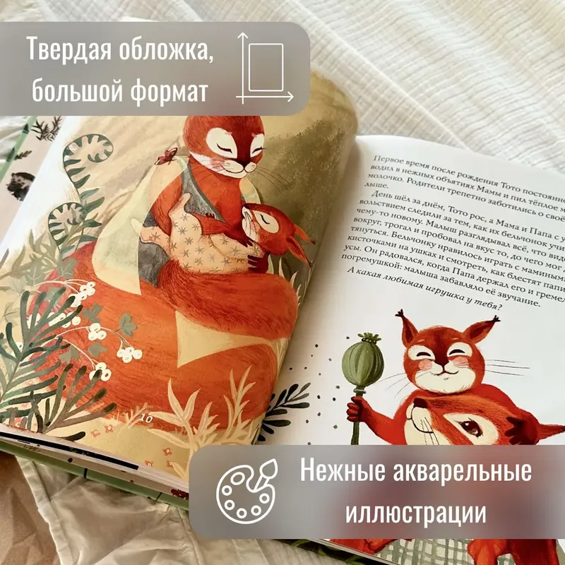 История о бельчонке Тото, его семье и о том, как он растёт, настроит маму на мягкое окончание кормления, а малыш с лёгкостью узнает в маленьком сказочном герое самого себя.