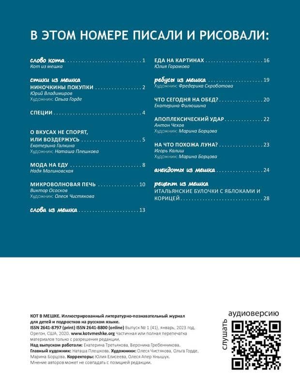 Кот в мешке, Выпуск 1, Январь 2023: “О еде!”