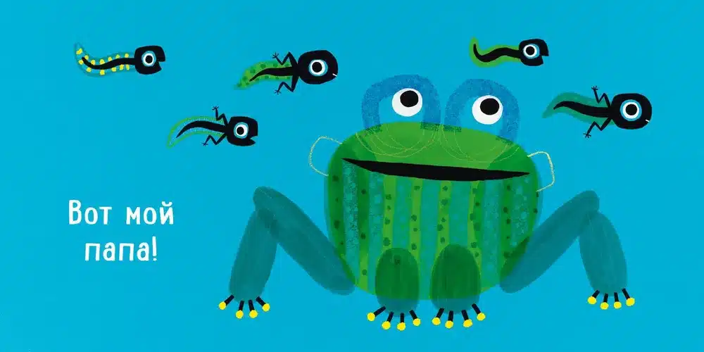 Тигрёнок, носорог, бобрёнок и даже крошечный головастик ищут своих пап. Помоги каждому из зверят найти папу!