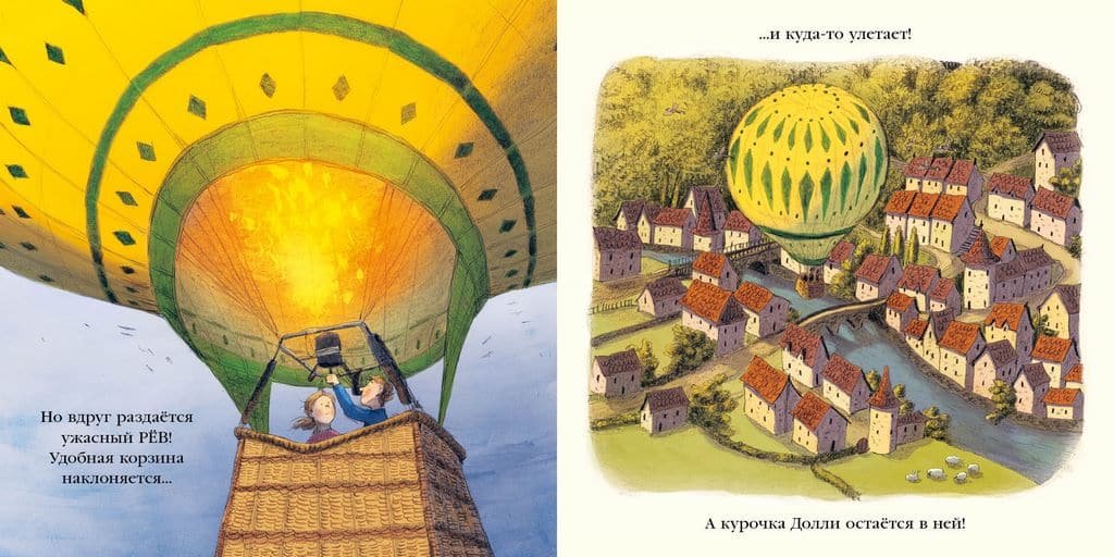 Курица Долли очень любит мальчика и каждый день старается снести для него яйцо в новом месте! Но в этот раз уютное местечко оказывается… корзиной настоящего воздушного шара! Долли улетает далеко-далеко от дома… Как же теперь вернуться к мальчику?