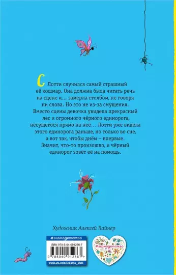 Иногда Лотти снилось, что она единорог и бежит по прекрасному лесу. В этом лесу всегда таилась тень – огромный чёрный единорог, издалека наблюдающий за ней. И вот он вновь явился ей, но теперь посреди дня, да ещё и в самый неудачный момент – когда девочка читала со сцены речь. Ему явно что-то нужно от Лотти, но что?