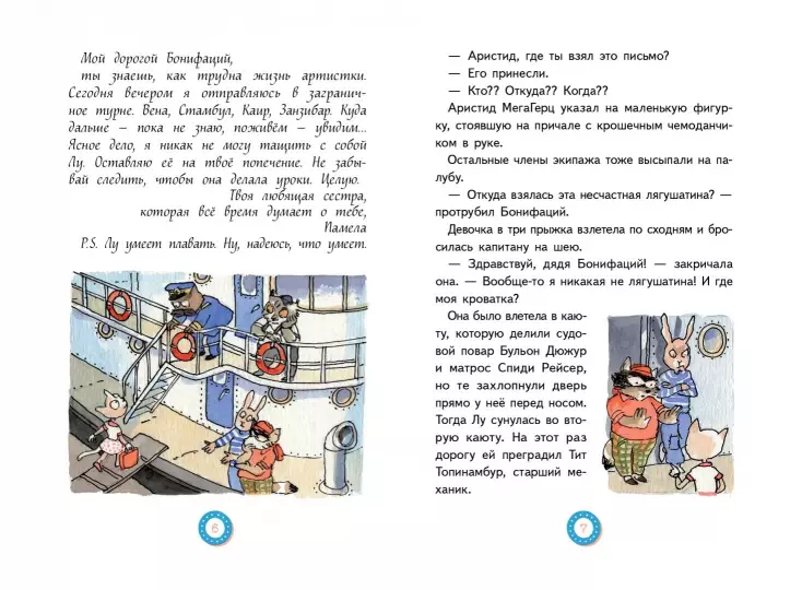 Знакомьтесь: жутко смелая и чудовищно дерзкая, главная ценительница дьявольского рагу из креветок – Лу Всехнаверх поднимается на борт “Упрямого”! Буксир под предводительством котпитана Бонифация, её неунывающего дяди, спешит на помощь терпящему бедствие “Бельфегору”. Наперерез несётся “Железная звезда”, ведомая злейшим врагом Бонифация – Гедеоном Недобрым. Но что оба соперника обнаружат, домчавшись до тонущего судна? Судно не тонущее, а замогильно стонущее – настоящий корабль-призрак!