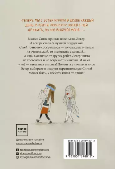 Сигне во всем хочет быть похожей на Эстер. С ней точно не соскучишься – то “спасаешь” кексы из учительской, то помогаешь с кошкой. И мама у неё – известная актриса. Почему же Лучшая в мире Эстер выбирает в подруги нерешительную Сигне? Может быть, у неё есть какая-то тайна?