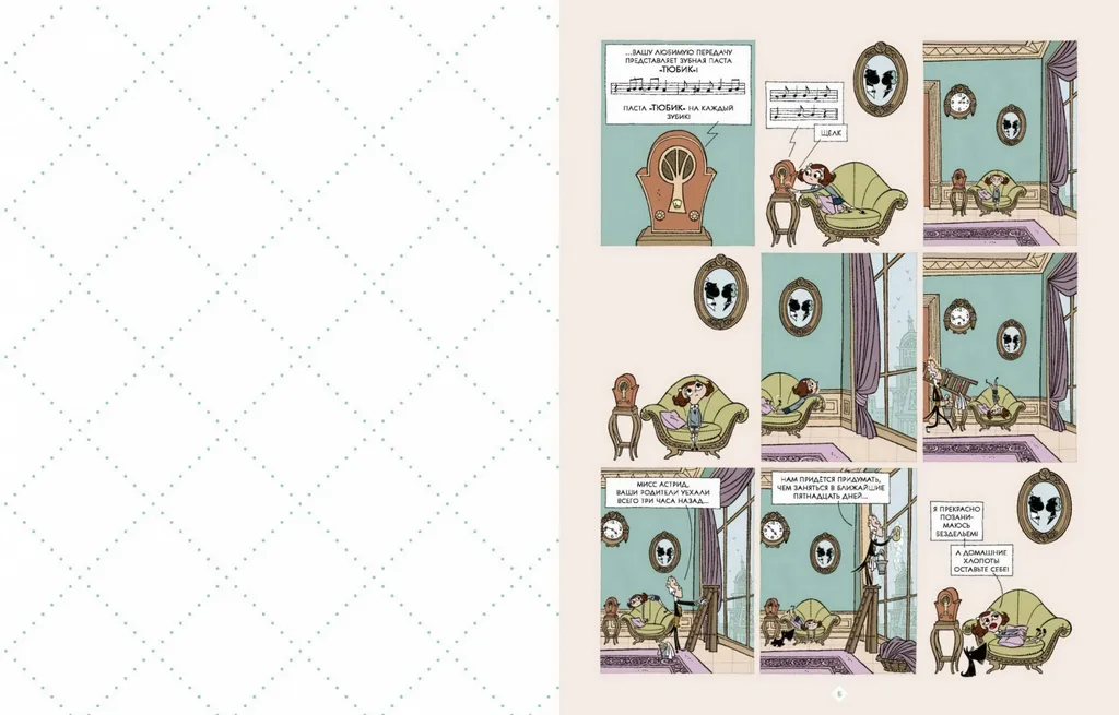 Если нужно поймать зубную мышку в огромном замке или парочку привидений в частной школе – у Астрид всегда есть план! Но вот беда – никто не желает составить ей компанию: родители всё время заняты, кот Гэтсби слишком ленив, пес Фицжеральд чересчур назойлив, а дворецкий и домработница ужасно скучные…