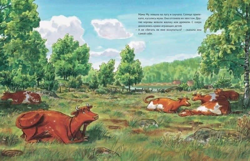 Самая непоседливая на свете корова Мама Му не может спокойно пастись на лугу, когда на дворе стоит погожий денёк. Она украдкой сбегает на озеро. Но по дороге Мама Му падает!