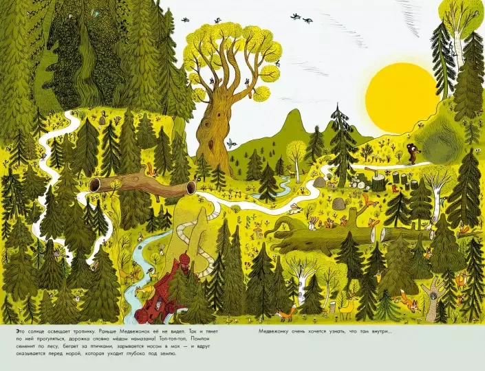 “Когда у меня заканчивается фантазия, я рисую в уголке листа кого-то из знакомых, занимающимся глупостями, – и заливаюсь смехом. Очень важно, чтобы сам я много смеялся, пока рисовал книжку”, – говорит французский художник Бенжамен Шо, дважды номинант на Премию Андерсена. Теперь наша очередь радоваться! Рассматривать большие страницы с приключениями незадачливого медвежонка Помпона и его папы и находить всё новые детали хочется снова и снова.