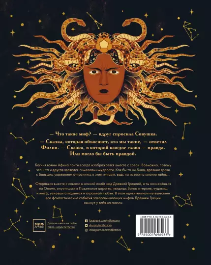 Отправляясь в удивительное путешествие вместе с двумя совами, дети познакомятся с захватывающими и таинственными мифами Древней Греции. Они узнают о богах и героях, побывают на Олимпе, в Подземном царстве и во многих греческих городах, послушают поучительные, иногда печальные, иногда счастливые истории и поймут, каким видели мир древние греки.