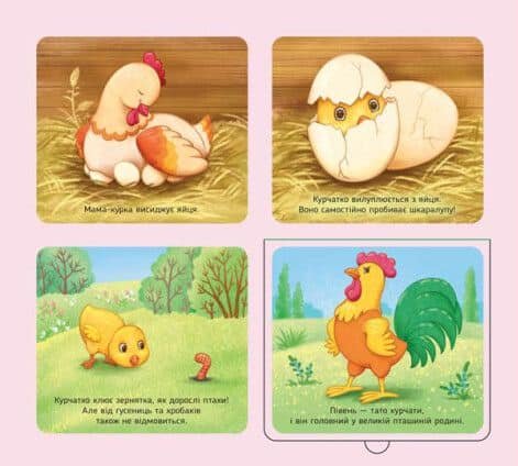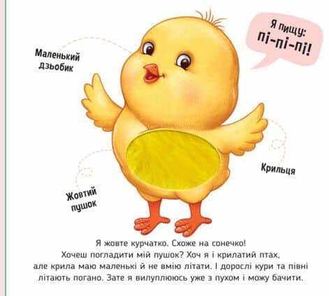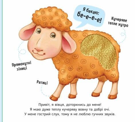 Настав час знайти нових друзів! Кролики, курчата, вівці та інші свійські тварини, що мешкають на сторінках цієї книжки, не тільки добрі та веселі, а й пухнасті. Кожну тваринку можна погладити і познайомитися з нею ближче. Малюк дізнається все найцікавіше про нового друга: що їсть, де живе і які має вподобання. Окрім тактильної вставки, на кожному розвороті дитину чекає таємне віконце.