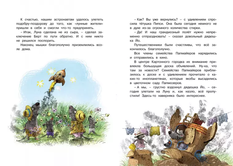 Семейство Папмайеров – дядюшка Йо, тётушка Пипси, мышата Берт и Йоги – тоже обитает в Картонном городке. Эта дружная семья очень любит путешествия и приключения, постоянно что-то изобретает и придумывает себе всякие увлекательные занятия – словом, никогда не скучает. Чего только стоят их полёты на Луну и поиски подводных сокровищ! А однажды в доме Папмайеров случился настоящий переполох…