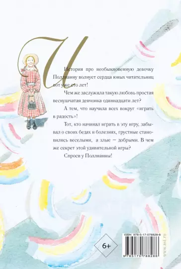 История про необыкновенную девочку Полианну волнует сердца юных читательниц вот уже сто лет! Чем же заслужила такую любовь простая веснушчатая девчонка одиннадцати лет? А тем, что научила всех вокруг “играть в радость”! Тот, кто начал играть в эту игру, забывал о своих бедах и болезнях, грустные становились веселыми, а злые – добрыми. В чем же секрет этой удивительной игры? Спроси у Полианны!