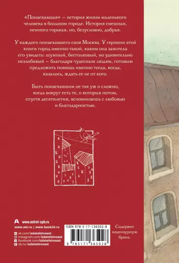 У каждого понаехавшего своя Москва. У героини этой книги город именно такой, каким она захотела его увидеть: шумный, бестолковый, но удивительно незлобивый – благодаря чудесным людям, готовым предложить помощь именно тогда, когда, казалось, ждать ее не от кого.
