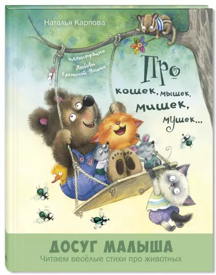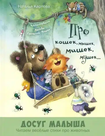 Жизнерадостные, звучные и очень лёгкие стихи Натальи Карповой познакомят малышей с самыми разными животными: хитрым воробушком и непоседливой трясогузкой, отважным зайчонком и перепуганным совёнком, с беззаботным пони и трудолюбивым пауком.… А для взрослых эти весёлые стихи – возможность посмотреть на мир глазами детей, увидеть необычное в самых привычных, простых вещах. И детям, и взрослым доставят немало радости очаровательные иллюстрации, автор которых, Любовь Ерёмина-Ношин, знакома нашим читателям по чудесной книжке “Кто нарисовал осень, или Про краски в коляске”.
