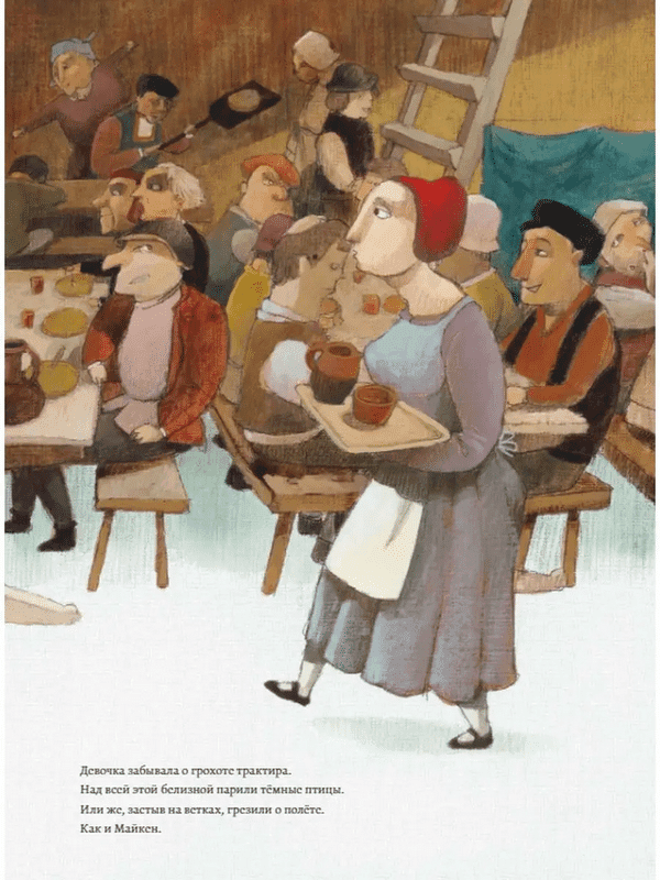 Однажды по пути домой Майкен нашла раненую птичку. Как помочь ей, где укрыть? Уж точно не в трактире, где живёт и работает Майкен, ведь там вечно шныряют туда-сюда охотники со своими собаками.