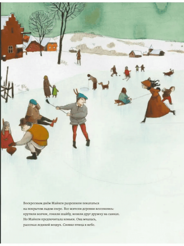 По воскресеньям Майкен отправлялась кататься на коньках по замёрзшему озеру. Она мчалась, рассекая ледяной воздух. Словно птица в небе.