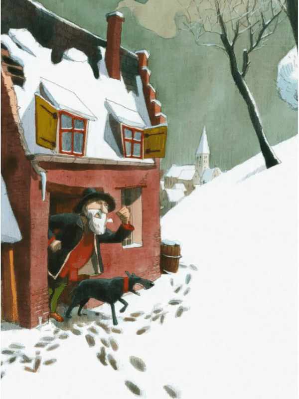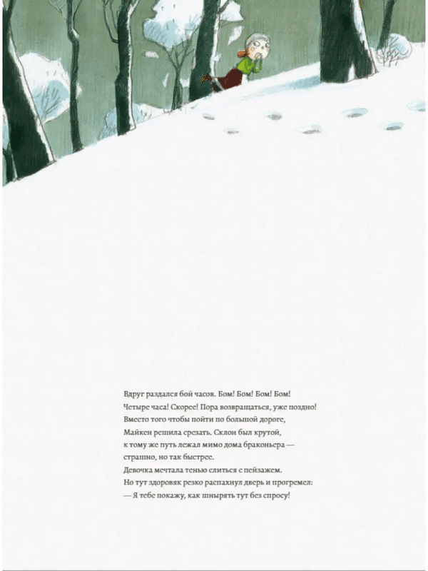 На создание этой истории автора и художника вдохновила картина Питера Брейгеля “Охотники на снегу”.