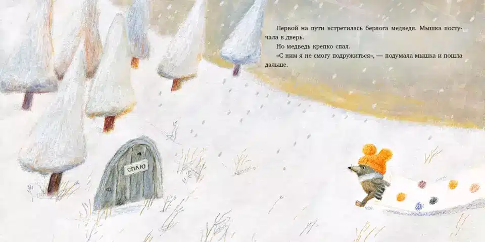 Наталья придумала смешных и обаятельных героев, сочинила трогательную историю, нарисовала атмосферные иллюстрации. Получилась зимняя сказка для самых маленьких о том, что каждый может найти друга, стоит только проявить доброту и щедрость.