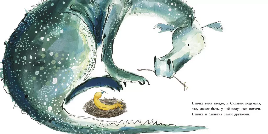 Сильвия — единственный дракон в целом мире, и она была очень одинока… пока в один прекрасный день не встретила Птичку. Маленькая и весёлая, настолько непохожая на огромного дракона, Птичка тем не менее навсегда изменила жизнь Сильвии…