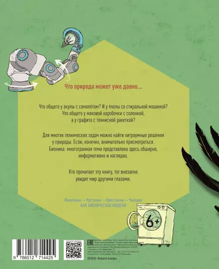 Это познавательное издание поможет узнать ещё много других увлекательных фактов соединения БИОлогии с техНИКой: его авторы с глубоким знанием дела преподносят технические открытия и изобретения, вдохновлённые и буквально окрылённые самой природой, её гениальными круговоротами и точно рассчитанными связями.