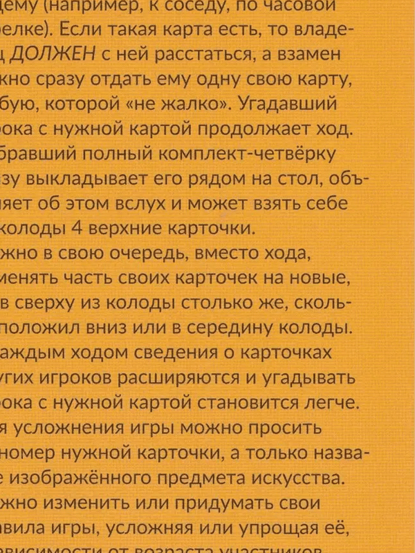 Настольная игра. 36+3 карточки+инстуркция. Яркие карточки в занимательной форме познакомят детей с животными, живущими в залах Эрмитажа. В игре побеждает самый внимательный игрок, собравший как можно больше комплектов из четырех карточек.