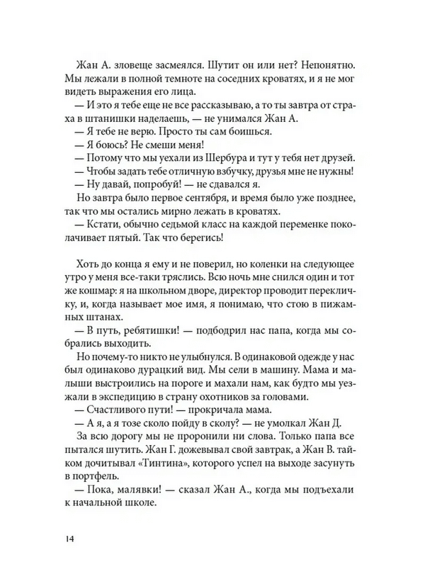 Уже знакомые нам по предыдущим книгам серии “Приключения семейки из Шербура” – “Омлету с сахаром” и “Летающему сыру” – братья Жаны и их родители переехали в Тулон. Папа, конечно, мастер на все руки, а у мамы всегда всё под контролем, но похоже, что год предстоит непростой. Еще бы, ведь Жан А. вместо подготовки к контрольной тайком собрался на вечеринку, Жан Б. вообще боится идти в новую школу, а вместе с Жаном В. они объявляют войну загадочным Касторам…