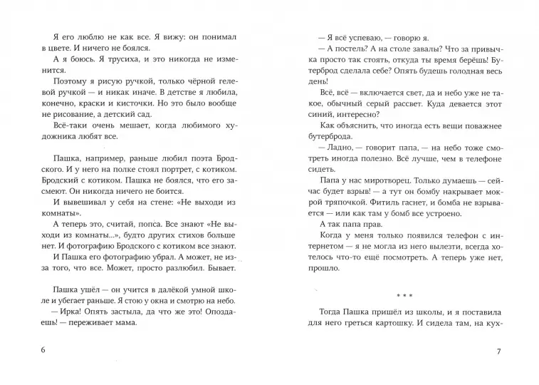 Ирке проще, она младшая. Когда рядом старший брат, такой брат! – всё не так уж сложно, и вообще такая жизнь называется “счастливое детство”, нечего и жужжать. Но нужна ли она сейчас брату и другим людям, и вообще… кто она? Кажется, она умеет рисовать… хотя если сравнивать с Пашкой или одноклассницей Тоней, то совсем не умеет. И потом… что рисовать?