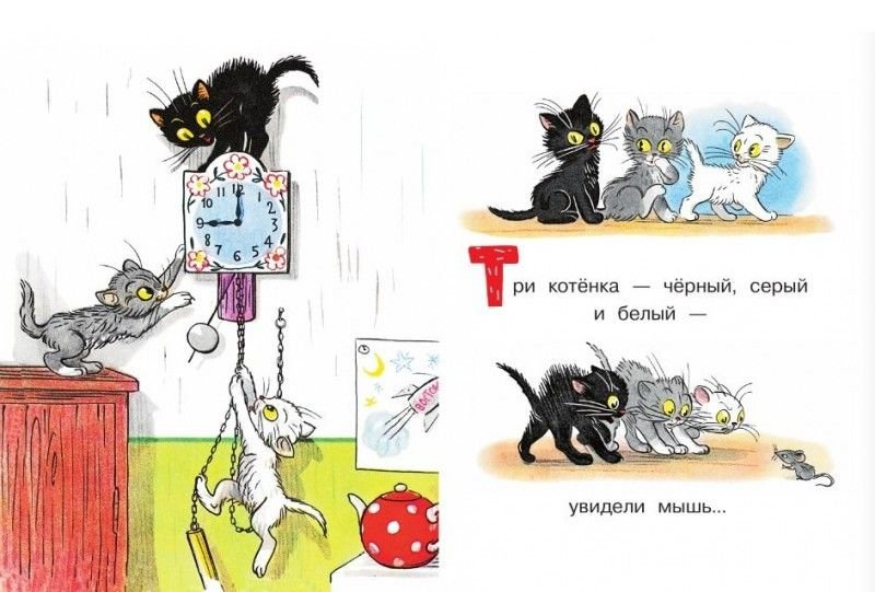 Ох уж эти три котёнка! Куда они только не забирались: побывали и в банке с мукой, и в самоварной трубе, и в пруду. И, конечно, каждый раз меняли цвета своих шубок. А как так получилось и какими котята вернулись домой, вы узнаете из этой книжки! Владимир Григорьевич Сутеев – классик отечественной детской литературы. Его сказки – простые, понятные, но по-своему увлекательные – особенно интересны самым маленьким читателям. Ведь почти каждая фраза в них сопровождается рисунком, и историю можно проследить по картинкам.