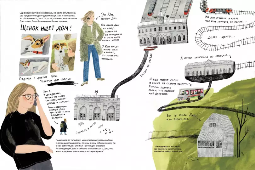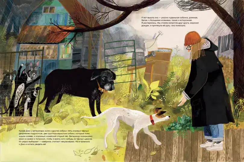Меня зовут Лена Булай, я иллюстратор, и у меня есть любимая собака по имени Джо. Когда она появилась, я практически ничего не знала о собаках и наделала кучу ошибок. Но я много училась, читала, ходила на семинары и консультировалась у специалистов по поведению собак. Узнавала, как правильно общаться с собакой, слушать её и слышать, как строить с ней отношения, как заботиться о собаке и воспитывать, как подбирать правильное питание, гулять с ней и путешествовать.