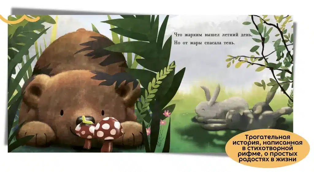 Бестселлер №1 по версии Нью-Йорк Таймс от Ходы Котб, со-ведущей американской программы «Сегодня» представляет нам трогательную историю о благодарности, которую мы испытываем за всё большое и маленькое, что приносит нам жизнь. Мама медведица и медвежнок перед сном вспоминают всё то, что принесло им радость за день.