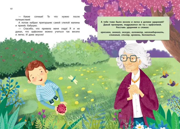 Свекла, компас, звонит, красивее… Как же произнести правильно? Куда поставить ударение? Герой этой книги Марк тоже растерялся, но Бабумница привела его в долину ударений. Здесь добродушный дровосек Дор расскажет, как запомнить ударения с помощью рифм; ёжик покажет, где нужны иголки – ой, то есть точки, – чтобы получилась буква Ё; сова проухает ударный У; а из волшебного колодца эхом донесутся целые слова, если прокричать в него первый ударный слог. С помощью интересных заданий подружиться с орфоэпией будет проще простого!
