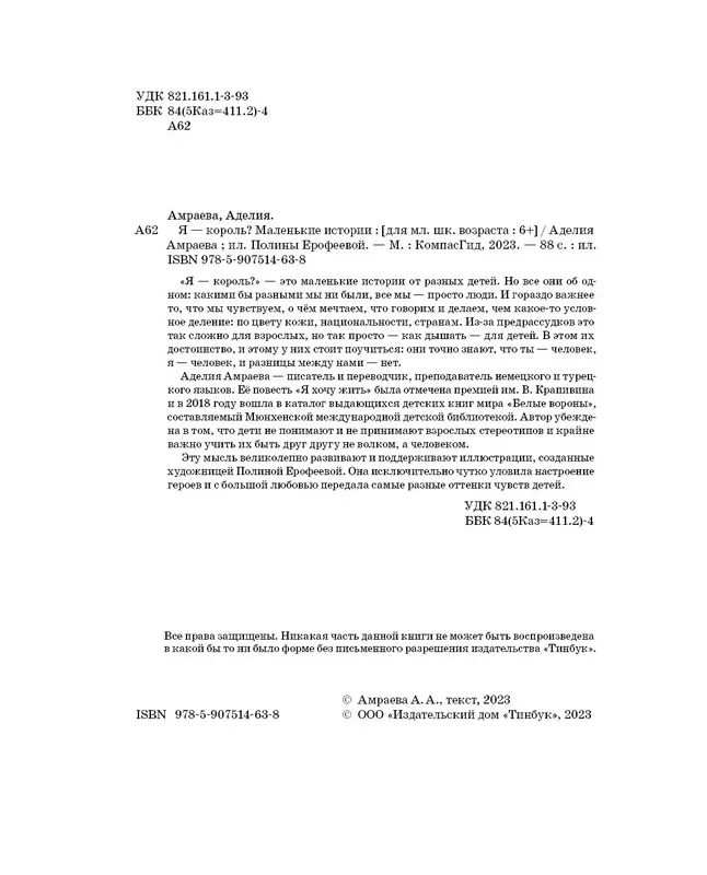 «Я — король?» — это маленькие истории от разных детей. Но все они об одном: какими бы разными мы ни были, все мы — просто люди. И гораздо важнее то, что мы чувствуем, о чём мечтаем, что говорим и делаем, чем какое-то условное деление: по цвету кожи, национальности, странам. Из-за предрассудков это так сложно для взрослых, но так просто — как дышать — для детей. В этом их достоинство, и этому у них стоит поучиться: они точно знают, что ты — человек, я — человек, и разницы между нами — нет.