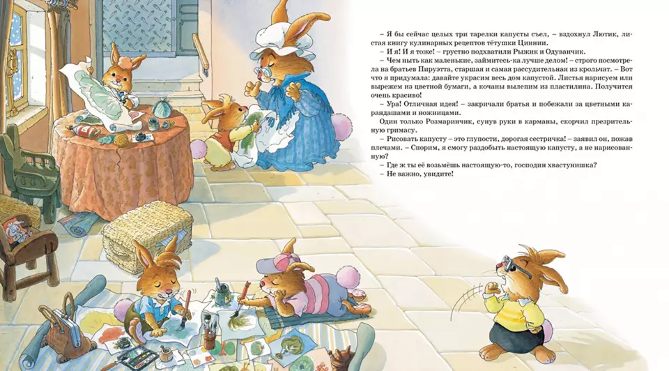 Прежде всего вы узнаете о том, как Розмаринчик, поспорив с братьями и сестрой, отправился среди зимы на поиски свежей капусты и что из этого вышло…